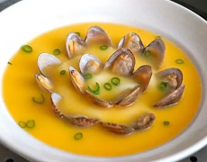 10、蛋羹蒸10分钟解开锅盖把秋葵放到蛋羹上,再蒸2-3分钟。