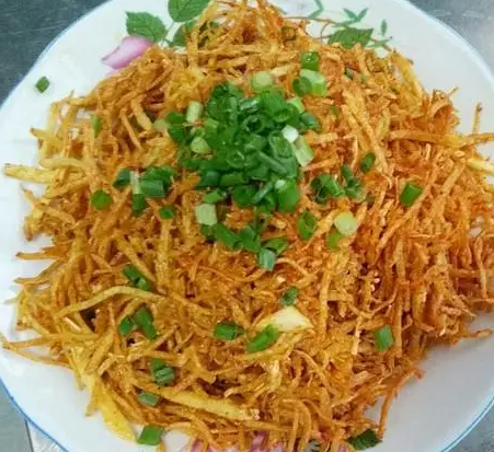 2.我们在炸制土豆丝的时候,切记时间不宜过长,不然就没有清脆爽口的感觉了。