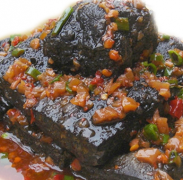 材料:玉子豆腐2条,墨鱼滑4两,粟米粒两汤匙,蒸鱼豉油适量