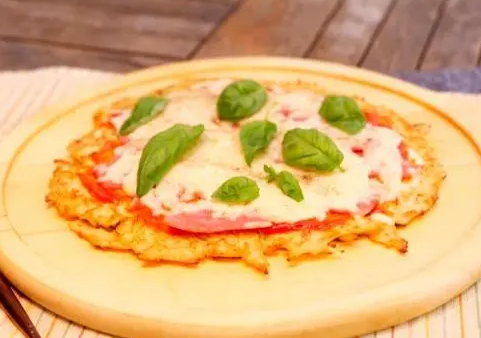 10、打开锅盖,奶酪条融化,轻轻晃动锅,饼会自己脱离锅身即可。