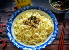 如果有花生酱,还有榨菜颗粒味道会更好。凉面中的配菜也可以加入豆芽和胡萝卜丝或者肉酱等。
