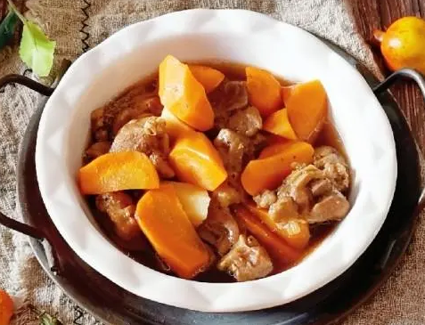 1. 胡萝卜与羊肉洗净沥干,并将胡萝卜及羊肉切块备用。