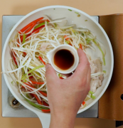 1.黄豆芽洗净,入水锅中,加调味料A,以中火烧煮至豆芽去青涩味后熄火,再泡浸8~10分钟,捞起沥干堆放盘中。