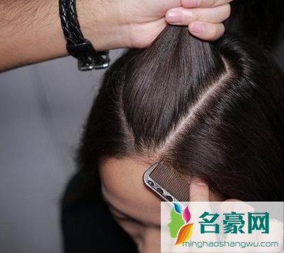 3、接下来的一步就是将三角区的头发开始进行编发了,用蜈蚣辫的编法反手编发。
