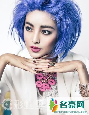 非主流个性蓬松短烫发发型,染成深海蓝色泛着银光的发丝,外开后蓬松有型的发丝线条,都是添加非气质的关键。