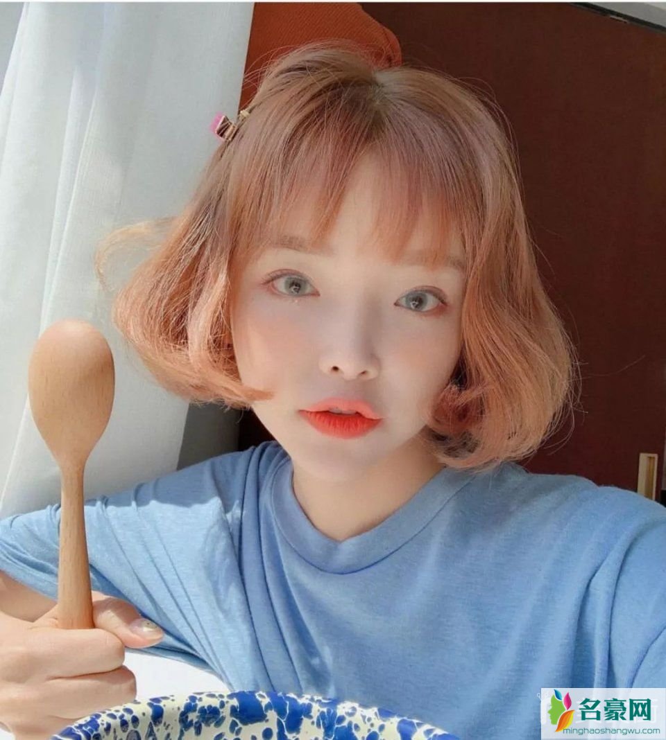 最显年轻且百搭的短发非这款内扣短发+齐刘海短发发型莫属,内扣的造型修饰脸型,即使是脸大脸款的妹子也能很好的修饰,刘海是减龄必备的元素,空气刘海或者齐刘海是减龄的法宝,搭配带点珊瑚粉的橙黄色,简直可爱到爆。