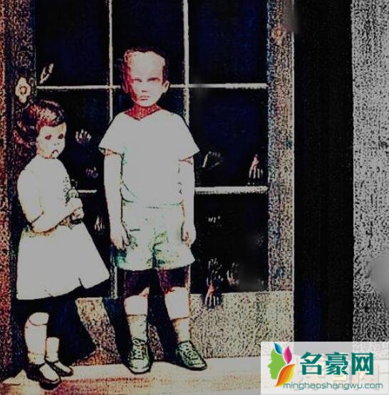 四、右下角说。从绘画构图的角度来看,整幅画偏于左边,就是重心都在左侧,左侧的小女孩小男孩绝对是画面的重点。但是仔细看,右边就有点空了,所以很有可能右下角的位置有东西,因为大家注意小女孩的眼神,虽然她是人偶,没有双眼,但是感觉她能“看见”,小男孩是正视前方,而很明显小女孩的目光瞥向右侧,看着图中红笔勾出的部分,所以本人也是推测这个部分有个什么东西吧。而且小女孩的手里紧紧抓着类似水罐的东西,显得很不安,很有可能右侧的这个东西是个很恐怖的事物,比如一具尸体横躺在地上。