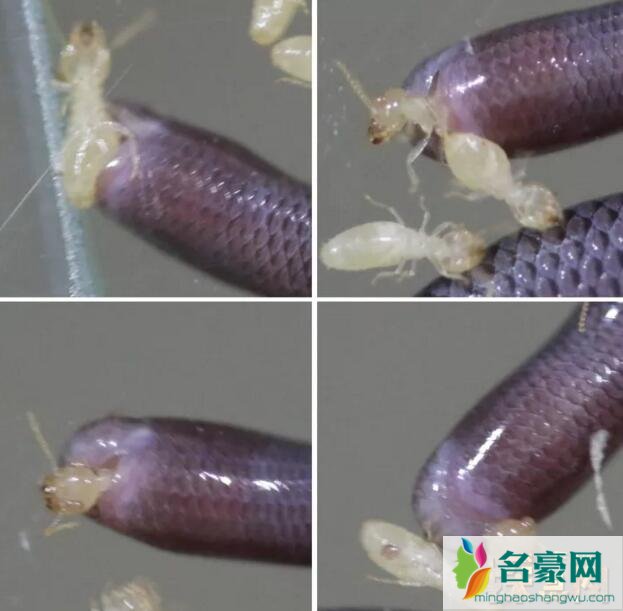 更有趣的是钩盲蛇会经常被误认为蚯蚓,这和它们的生活习性有着很大的关系。钩盲蛇的身体虽然很细,但是鳞片给了它们足够的坚韧度,所以挖起洞来十分得门。所以你经常可以在泥土里看到钩盲蛇的身影,几乎就和蚯蚓一个样。而且因为常年生活在地下,钩盲蛇的眼睛已经退化成为了两个小点,基本上是看不见东西了。