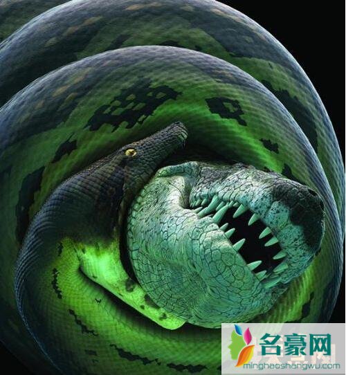 泰坦蟒相当于是巨型放大版的现代蟒蛇,它们多生活在水里,多数时候游离在水边,常常趁它的邻居crocodilyform鳄不注意的时候缠住这种鳄鱼的身体,让这个这个2米多的“小家伙”窒息而死,随后再将其吃掉...这种关系一直绵延至今,如今的蛇与鳄的后代的关系依旧是交锋行为不断!