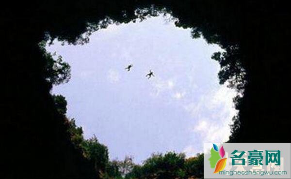 令人震惊的是,为了能够拍摄到燕子洞内的神秘风景,一名电视台探险者竟然只在后背系上一个降落伞,就勇敢地纵身跳下这一深达426米深的黑暗洞穴。