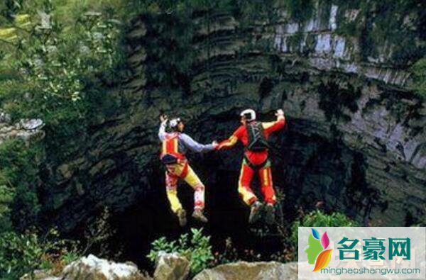 因为它独特的深度,燕子洞吸引了来自世界各地的探险爱好者,目前这里已经成为跳伞爱好者的天堂。一般而言,400多米的深度,跳伞者从顶部做自由落体仅需12秒便可到达底部,但跳伞前将绳索下放到洞穴中就需要1小时。