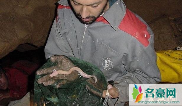 仔细看似真龙的生物其实是叫"洞螈" 这是一种两栖动物,发现于欧洲一些阴暗的洞穴里。过去,人们把它们误认做是龙的幼仔。 有点跟某些人的皮肤一样,因此它们还有个别名“人鱼”。