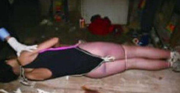 死亡现场:身穿红色花裙子(他堂姐的),双手、双脚用专业的打结手法挂在屋梁之上,脚上吊有一个大秤砣。