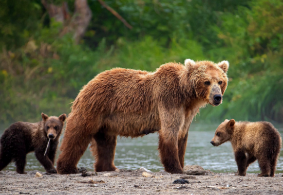 棕熊是陆地上体型最大的食肉动物,身高可达近三米。棕熊的性格相对温和,不过,它愤怒时,可以杀死老虎。