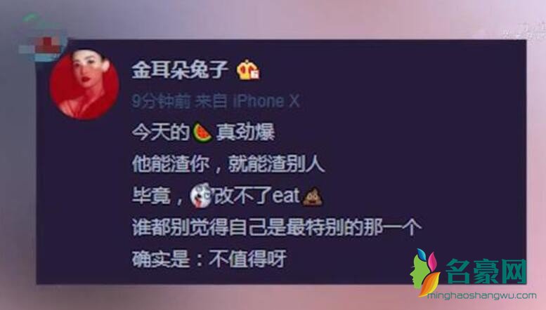 据悉,马蓉发文diss罗志祥表示:“今天的瓜真劲爆,他能渣你,就能渣别人,毕竟,狗改不了eat屎,谁都别觉得自己是最特别的那一个,确实是:不值得呀。”