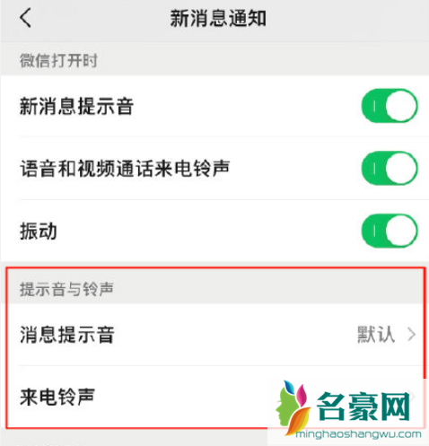 2、在微信新消息通知里就可以看到来电铃声选项,点击进入;
