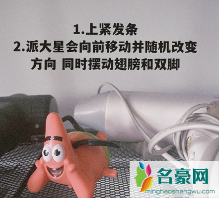 派大星:把派大星按在桌子上,背后的发条向后旋转5圈左右,派大星就会向随机的方向移动,加上小翅膀和小腿腿都会摆动,也太可爱了!