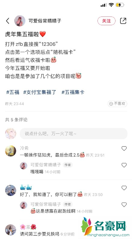 根据小红书上的网友,现在支付宝可以提前集五福卡了,大家只需要在支付宝app搜索“12306”,点击搜索结果上方的banner图,在新打开页面点击“随机福卡”,点击“开福气盲盒”,即可获得一张随机福卡,1月19日大家进入支付宝首页的“卡包”即可随机兑换一张福卡。要注意的是,这个活动只持续到1月18日。