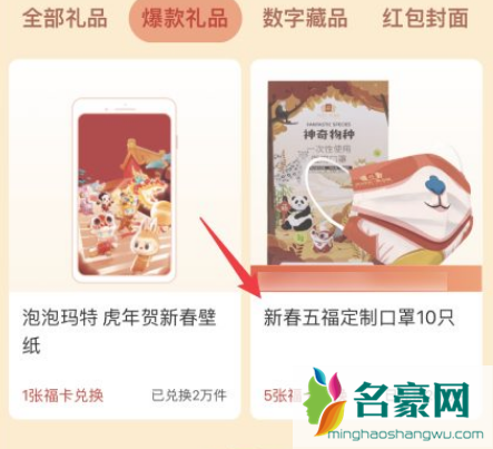 福气店用一定数量的福卡兑换实物奖品(奖品包括公仔和口罩等),用任意5张福卡就可以免费兑换到口罩,还是挺划算的,不过口罩得每天早上开抢,下午去抢口罩是会发现已抢光的提示。