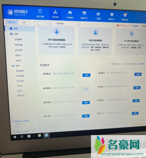 要返回旧版的在电脑下载爱思助手连接手机 在上面下载叮咚买菜 拉到下方有一个版本选择v9.39.0这个(如下图)