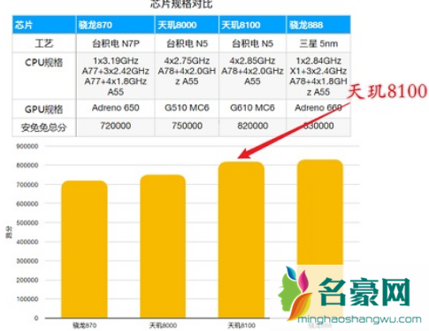 天玑8100max功耗更低,骁龙888的性能跑分成绩更好。