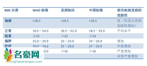如果一个人的BMI指数低于18.5,他被认为是瘦的,18.5到23.9之间是正常的,24到27之间是超重的,大于32是超重的。这些数据在男性和女性中也很常见。当然,BMI指数只是一个参考,它相对简单和粗糙。