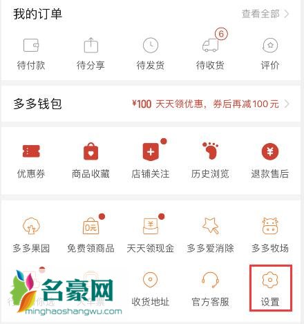2、打开拼多多APP个人中心后,找到拼多多APP设置;