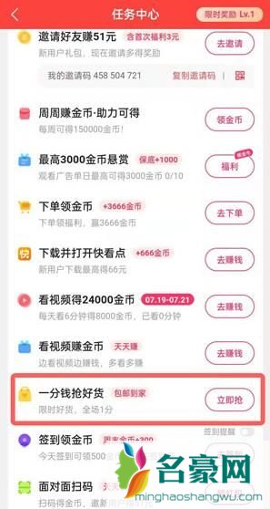 在任务中心点击【一分钱抢好货】进入;