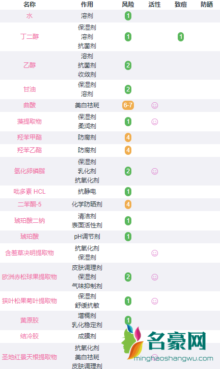 本产品含有孕妇慎用:2种(曲酸、二苯酮-5)