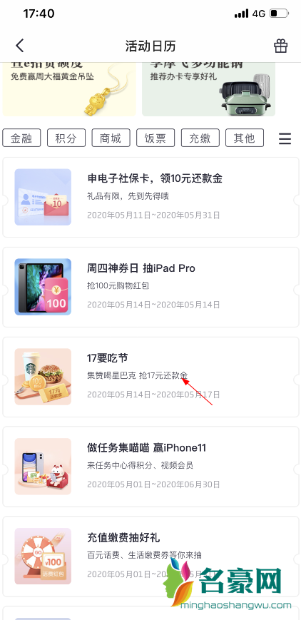 2、在活动里面就可以看到17要吃节活动入口,这是五月份最新活动!