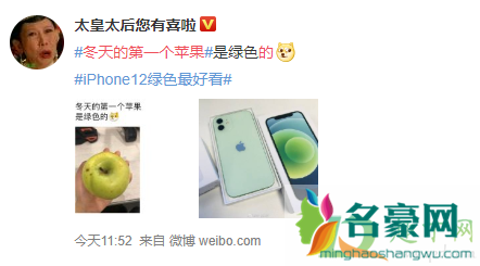 冬天的第一个苹果来由:一个女生在朋友圈发了吃的绿苹果,并配文“希望冬天,能有钱买一台绿苹果”;随后女生哥哥给她发了“蓝苹果”的照片,也就是刚出的蓝色iPhone12,并表示蓝色和自己的拖鞋撞色了,“我要在冬天之前就把苹果给你”。