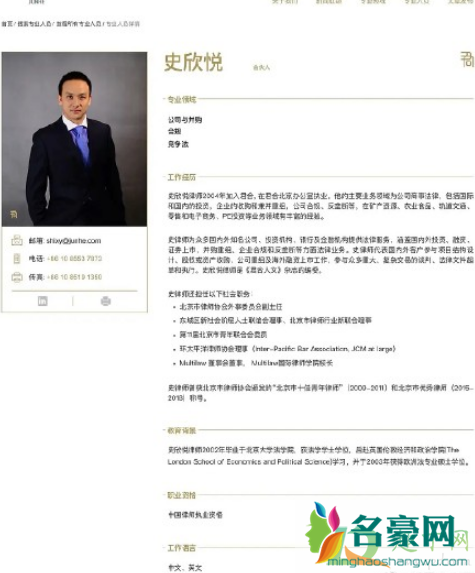 史欣悦律师本科北京大学法学院,硕士伦敦经济和政治学院