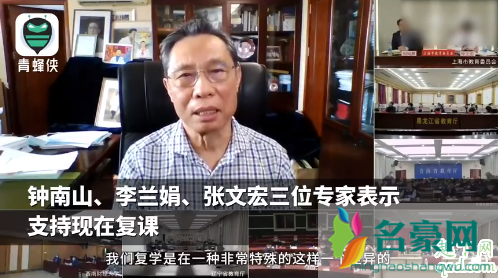 在4月20日下午,教育部召开的学校疫情防控专家报告视频会上,钟南山、李兰娟、张文宏三位专家均表示赞成现在复课。