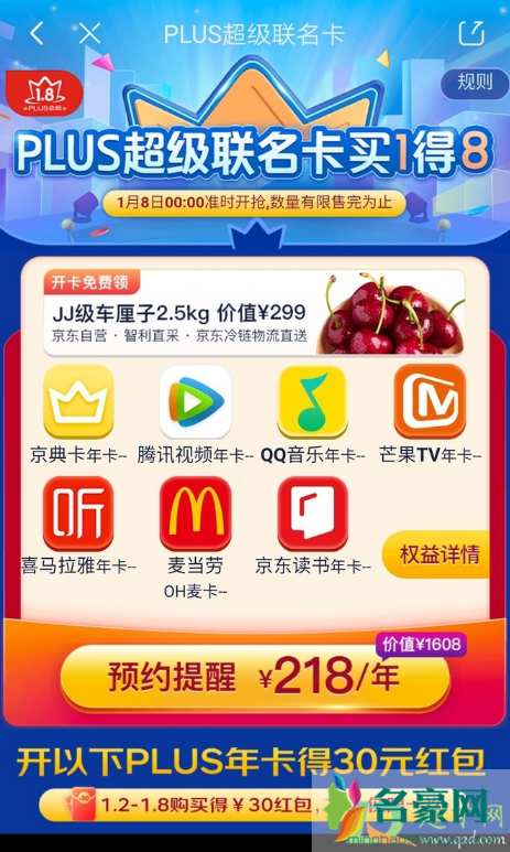 2021京东超级联名卡活动来袭,今年依旧是买1送18的活动,很多会员都是年卡,重点是还送2.5kg的车厘子,是不是很香?据说,这个车厘子不要是可以转手卖的,因为发放下来的是299车厘子优惠券,直接0元购买,具体可以看看本站提供的介绍。