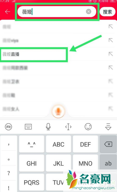 输入(薇娅),会有很多智能信息出来,点击(薇娅直播)。