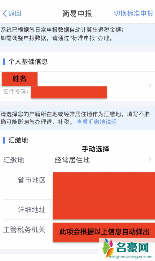 第二种,根据实际情况选择经常居住地或户籍所在地,主管税务机关会自动弹出