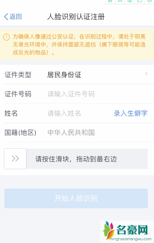 5.输入身份证号,开始人脸识别