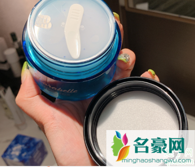 深蓝色的包装,里面是半球型附送了一个挖勺,非常卫生方便,质地是比较晶莹的水凝状灰常容易推开,闻起来有股海藻发酵的味道里面含有蓝色的精华颗粒涂抹在肌肤稍加按摩能迅速和面膜融合在一起