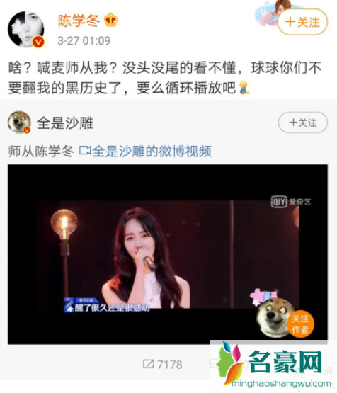 陈学冬深夜冲浪,转发了一条他唱rap的沙雕视频,后来发现视频后半部分是秦牛正威,陈学冬慌了:“我现在删不删是不是都不对,我没看到后面那个…姑娘……对不起”