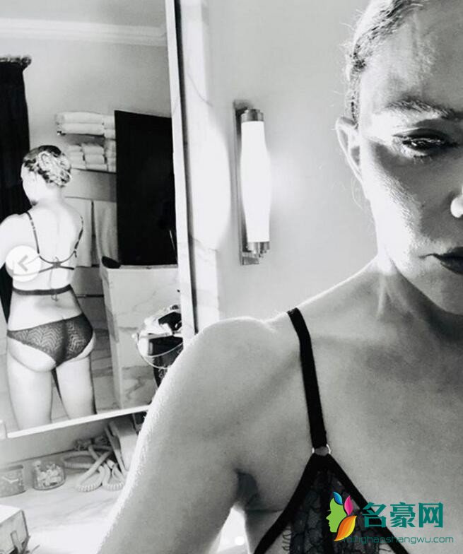 麦当娜分享出来的两张照片中,其中一张是她正面照身材超好,能看到平时注重锻炼的肌肉,另外一张黑色背面照她只穿着内衣,身上没什么赘肉,十分火辣诱惑。